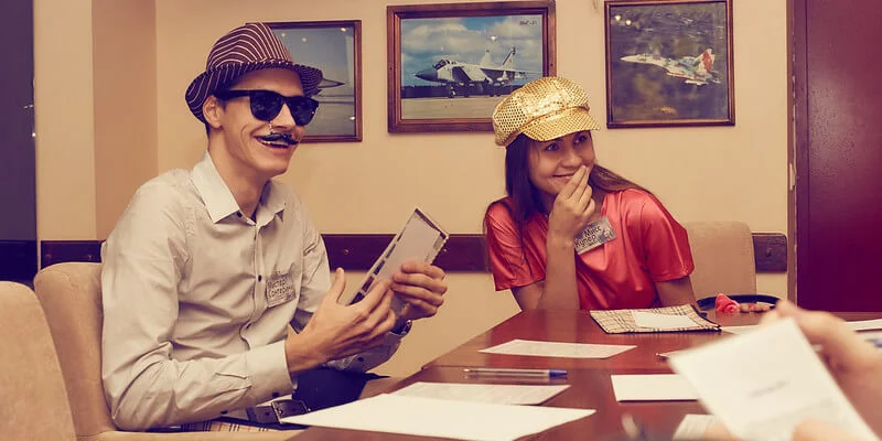 Квесторія — це гра не проти кімнати, а один з одним. Ви граєте у команді, але у кожного — своя мета. Ведучий проведе гру де завгодно і з будь-якого приводу — на день народження, корпоратив або просто так.
