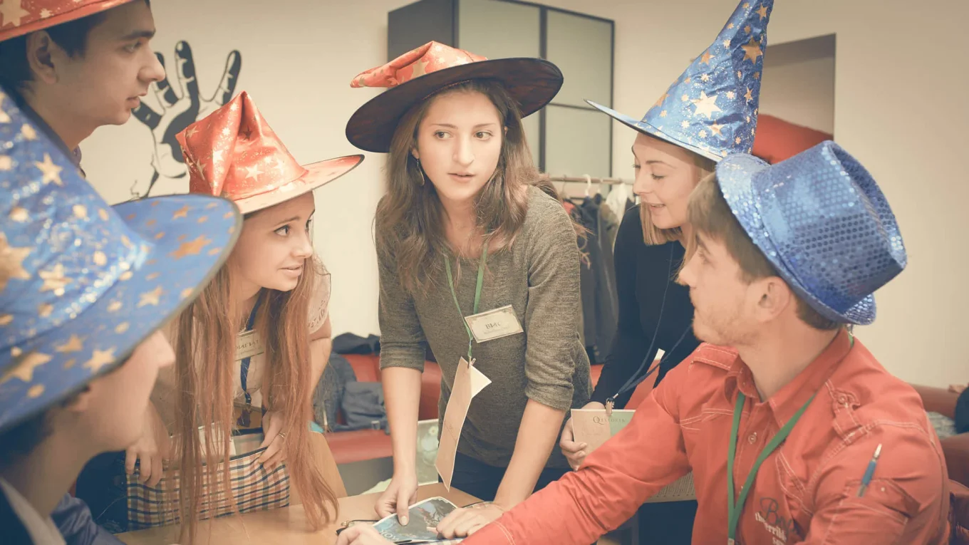 Квесторія — це гра не проти кімнати, а один з одним. Ви граєте у команді, але у кожного — своя мета. Ведучий проведе гру де завгодно і з будь-якого приводу — на день народження, корпоратив або просто так.